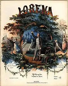 "Lorena" is an American antebellum song with Ohio origins. The lyrics were written in 1856 by Rev. Henry D. L. Webster, after a broken engagement. He wrote a long poem about his fiancée Ella Blocksom, but changed her name at first to "Bertha" and later to "Lorena", perhaps an adaptation of "Lenore" from Edgar Allan Poe's poem "The Raven." Henry Webster's friend Joseph Philbrick Webster wrote the music, and the song was first published in Chicago in 1857. It became a favorite of soldiers of both sides during the American Civil War. Members of the Western Writers of America chose it as one of the Top 100 Western songs of all time.[1]