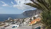 Los Gigantes is a resort town in the Santiago del Teide municipality on the west coast of the Canary Island Tenerife. Its main feature are the giant rock formations, Acantilados de Los Gigantes, that rise from the sea to a height of 500-800 metres (1,6402,625 ft) after which the town has been named. Los Gigantes means "The Giants".