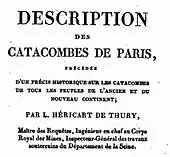Title page of the book lion of Paris catacombs) published in 1815 by Héricart de Thury.