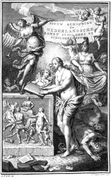 His parents Jean du Bourg(h) and Elisabeth Burlamacchi married in 1681. Louis Fabrice was baptized on 5 July 1693 in the Walloon church. He was a pupil of Gerard de Lairesse, Gerrit Rademaker (1672-1711) and Jacob van Huysum. In 1718 he became sexton of a small wooden church on Kerkstraat.[1] Around 1726 he was practising foreshortening and may have been a member of an academy; he produced a lot of nude (art) during his life.[2] When he married Eva de Kaarsgieter in 1729 he cooperated with Bernard Picart.[3][4] After producing several beautiful pictures, some of which may be seen at the Westerkerk, the New Church and town hall of Amsterdam, he exchanged the brush for the graver, and executed some vignettes and other small compositions, and also etched a number of plates from his own designs.