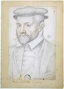Louis Prėvost de Sansac, seigneur de Sansac (1496-1576) was a French military commander and governor. A favourite of François I he fought at the Battle of Pavia and had responsibility for the education of the royal children. He continued to fight for France in the Italian Wars under Henri II and then the French Wars of Religion when they broke out in 1562. He aligned himself politically with the Guise, supporting them in their feud with the House of Montmorency. He led armies through the third civil war, but was not able to achieve any notable success.