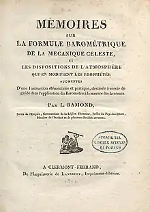 Mémoires sur la formule barometrique de la mecanique celeste, et les dispositions de l'atmosphere qui en modifient les proprietes, 1811