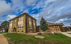 Louisa High School is a historic high school building located at Louisa, Louisa County, Virginia. It was designed by noted Richmond architect Charles M. Robinson and built in 1907, as a 1 1/2-story, stone building. About 1916, a second story was added along with an auditorium addition to the rear. Early in 1924 a fire gutted the building, leaving only the granite walls. It was rebuilt in its two-story configuration in 1925. The school served as an elementary school after 1940, and closed in 1987. The building was restored starting in 2002, and reopened in 2006 as a town hall, art gallery, and performing arts center.[3]