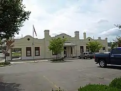 The Louisville and Nashville Railroad Depot is a historic train station in Cullman, Alabama. The depot was built in 1913 as a replacement for Cullman's original station. Cullman's founder, John G. Cullmann, gave money to the city upon his death in 1895 to lower the Louisville and Nashville Railroad tracks through town, in order to reduce noise and pollution. The plan was not enacted until 1911, when the L&N laid double tracks through the town, necessitating the construction of a new depot.[2] The depot served passengers until 1968, and was used for maintenance storage by new owners CSX until it was sold to the city in 1990. It was restored and now houses offices for the local United Way chapter.[3]