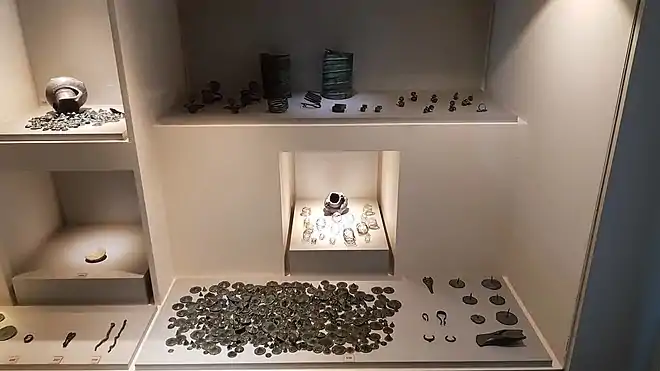 On the basis of bronze and ceramic finds, the hoard can be dated to the Middle Bronze Age period and it has been attributed to the late Vatin or Belegiš I Culture. Interestingly, a similar hoard of the same dating, but not as rich in deposited objects, was discovered in the city of Vukovar. It was found in Mala ulica ("Little Street") in Vukovar at the end of the 19th century. In 1897 the hoard was acquired by Josip Brunšmid, the director of the Archaeological Museum in Zagreb at the time. The circumstances of its discovery remain unknown. Therefore, it is quite possible that it contained more objects than are known today.