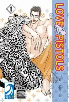 Love Pistols (originally titled Sex Pistols in Japan) is a Japanese yaoi manga series written and illustrated by Tarako Kotobuki. The English release was renamed from the original Japanese title "Sex Pistols" to "avoid any legal trouble" with the English punk rock group of the same name.[1] The premise of the story is that 30% of humans are not descended from apes but from other animals (these people are called "Zoomans") and they can interbreed with humans and with other male Zoomans by the use of a symbiote. Norio, an ordinary high school student discovers his Zoomanity and deals with the advances of many male Zoomans who want him to have their babies. The series previously licensed and published in English in North America by Tokyopop's Blu imprint is now published under Viz Media's BL imprint, SuBLime.[2] Geneon released a series of four Drama CDs for Sex Pistols between November 27, 2004, and April 25, 2008. A two-episode original video animation adaptation went on sale in 2010.