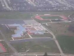 Loveland High School's current facilities were built in 1994[19] on the George Thurner estate[20] to replace aging Hurst High School, which was converted into a middle school. Two years earlier, Loveland City Schools purchased land in Symmes Township, just outside Loveland city limits. The district signed a contract in which the City agreed to provide the new high school with water and sewage services; in return, the district would push for Hamilton County to annex the high school into Loveland at the city's request.[21] In 2009, the Hamilton County Board of Commissioners allowed Loveland to annex the school.[22][23]