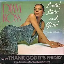 "Lovin', Livin' and Givin'" is a song recorded by American singer Diana Ross. It was produced by Hal Davis and written by Kenneth Stover and Pam Davis. The song was included in the film soundtrack to Thank God It's Friday and peaked at number thirty-five on the disco charts.[2]