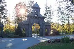 The cemetery is located in the central eastern part of the city, roughly bounded on the north by Fort Hill Park, on the east by Shedd Park, on the south by railroad tracks, and on the west by the Concord River, from which it is separated by Lawrence Street, where its historic main gate is located. It occupies 84 acres of rolling terrain, much of which has been developed. The main gate is a monumental granite structure designed by C. W. Painter and built in 1862. There is a secondary gate on Knapp Avenue at the cemetery's northeast corner, which was added in 1905. There are two buildings in the cemetery: the Talbot Memorial Chapel (1885) and the Superintendent's Office (1887), both Gothic Revival structures designed by Boston architect Frederick Stickney.[2]