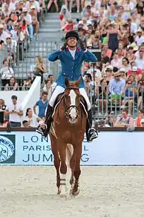 Diniz celebrating a clear round aboard Fit For Fun in the LGCT Grand Prix of Paris