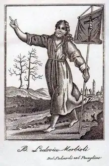Ludovico Morbioli (1433 - 9 November 1485) was an Italian Roman Catholic from Bologna who led a dissolute life before adopting a life of repentance.[1] Morbioli was married but separated from his wife after experiencing a sudden religious conversion in Venice during a grave illness - he forever wandered the streets preaching on penance and the need for personal mortifications. His use of a white habit has given rise to misconceptions that he was part of the Carmelite Order when he was not.[2]