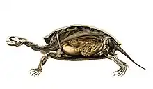 An illustration of the anatomy of Emys engraved by Friedrich Lehmann based on drawings made by Bojanus
