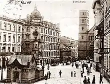 - ↑ out of 3 buildings pictured the only one still standing is the partially visible one in the back; the other ones were heavily damaged during the fightings in February 1945 and eventually demolished afterwards