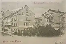 There were a few private schooling establishments for girls, operational in Posen in the early 19th century; some offered advanced curriculum but proved short-lived,[1] while the others did not meet expectations of the local landed gentry and the growing urban bourgeoisie.[2] In the late 1820s some of the Posen wealthy[3] approached local administration about setting up a well-grounded, high-level female school. The idea was picked up by princess Louise of Prussia, wife to prince Antoni Radziwiłł, the Polish duke-governor of the Duchy of Posen. Princess Louise from her youth demonstrated sympathy for the Poles[4] and interest in education alike; she agreed to head the project. It took shape of a private foundation, Luisenstiftung. Her contribution proved to be the financial basis of the enterprise, though other members contributed as well.[5] In 1830 the foundation opened a school for girls, initially named Louisenschule.[6]