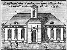 The first church on the site was a simple half-timbered Baroque building designed by Martin Grünberg and constructed in 1694–95, when the outside the Köpenick Gate became a parish of its own. This quickly became dilapidated and was demolished for a new building on the same site, built from 1751 to 1753 and designed by Christian August Naumann (died after 1757) and Johann Gottfried Büring (1723 and after 1788). The church was 40m long with a 15.75 wide, with a rectangular hall-nave, arched windows and a high hipped roof brick on four sides, with entrances located under the tower and on the two narrow sides. The pulpit and altar faced the tower entrance, in front of the font and on the east side of the organ. The Köpenick suburb was renamed Luisenstadt in honour of Queen Louise of Mecklenburg-Strelitz in 1802, leading to the church being renamed the Luisenstädtische Kirche in 1837.