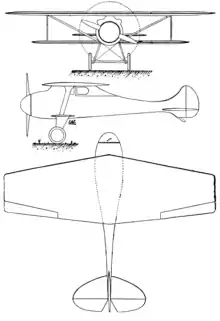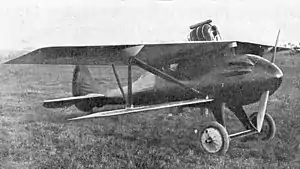 The racer was powered by a 220 kW (300 hp), liquid cooled V-8 Hispano-Suiza 8Fb engine, closely cowled and with a cylindrical Lamblin radiator mounted axially above the upper wing. Its fuel tank was in the fuselage, which was built in a novel way based on an internal tapered tube with clamping frames around it. Externally the fuselage was rounded in section and slimmed down markedly to the tail. There was an opening in the tube for the pilot's cabin in the rear part of the wing pylon, near mid-chord. It was accessed via a side door and had large side windows giving good lateral vision, even with the lower wing in place, and there was a transparent panel in the upper wing over the cockpit but the pylon ahead limited the forward view.[2]