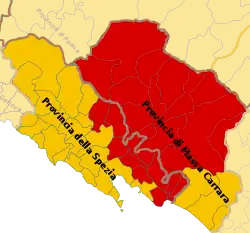 The Lunigiana (pronounced [luniˈdʒaːna]) or Lunesana is a historical territory of Italy, which today falls within the provinces of Massa Carrara, Tuscany, and La Spezia, Liguria. Its borders derive from the ancient Roman settlement, later the medieval diocese of Luni, which no longer exists.