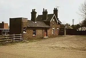 Luton Hoo railway station was built by the Hertford, Luton & Dunstable Railway on the branch line between Hatfield and Dunstable. It opened in 1860 and was originally called New Mill End. In 1861 the railway was taken over by the Great Northern Railway. The name changed to Luton Hoo in 1891[1] and the station closed in 1965.[2][3] The last passenger train, packed with enthusiasts, was hauled by Brush Type 2 (later Class 31) D5589 on 24 April 1965.