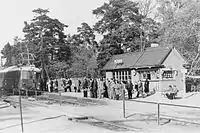 Opened in 1906, the station is not directly adjacent to the nearby Danderyds sjukhus metro station (opened in 1978), but it is just a few hundred meters away from it, allowing for interchange by just a short walk.