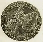 Coin of 1628 depicting John George I, Elector of Saxony and the Saxonian coat of arms