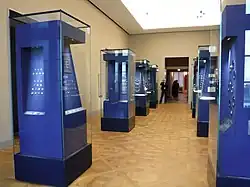 The Münzkabinett exhibition shows around 3,300 objects, including rare and unique items, which represent a cross-section of the various parts of the collection.[1] They are presented in four chapters (rooms). For research work, the collection has a library of some 30,000 volumes. The library and a study room are open to the public.[1]