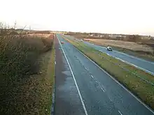 The first part of the road was opened in March 1968[2] as the Skelmersdale Regional Road between what is now junctions 4 and 5. It was originally a two-lane single carriageway road that was upgraded to two-lane plus with hard shoulders in 1973.[1]