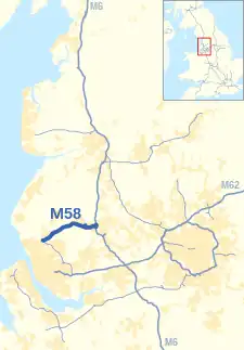 M58 highlighted in blue ![]() Shown with North West England motorway network | ||||