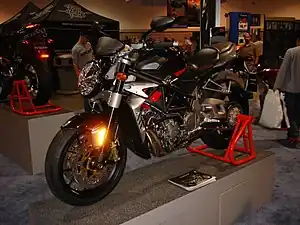 The MV Agusta Brutale series of motorcycles are manufactured by MV Agusta of Italy, starting in 2001.[1][2][3] Its style is classified as a naked bike and the series consists of several models powered by either inline-four or inline-three, DOHC-engines in various capacities.