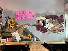"Sibling" restaurant Maíz Molino opened in Denny Triangle in 2022.[10] The interior features a sign with text which translates to "Without corn, there is no country".[7] The menu has included pork cheeks in mole, short ribs with masa grits, and snake venom–infused sotol.[11]