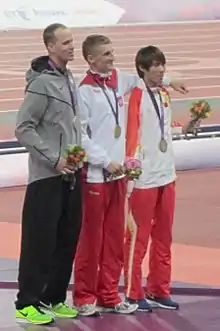 ![]() Lepiato (centre) at his 2012 Paralympics podium ceremony | |