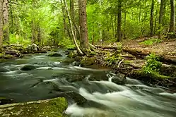 ![]() Mad River courses through woodlands in Wolcott during late May. | |