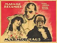 Madame Récamier is a 1920 German silent historical film directed by Joseph Delmont and starring Fern Andra and Bernd Aldor.[1] The film portrays the life of Juliette Récamier, a French society figure of the Napoleonic Era.