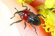 Madarellus undulatus is a species of weevils belonging to the Baridinae subfamily. It is 2.8–4.5 millimetres (0.11–0.18 in) long and have brown coloured head and black or sometimes reddish body. The prothorax is glossy and somewhat punctate with striate elytron. M. undulatus can be found in both Canada (Ontario and Quebec) and in the United States.[1] Larvae feed on poison ivy and Parthenocissus quinquefolia.[2]