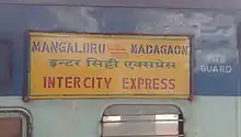 The "22635 / 36" Madgaon – Mangaluru Intercity Express is a Express express train belonging to Indian Railways Southern Railway zone that runs between Madgaon Junction and Mangaluru Central in India.[1]
