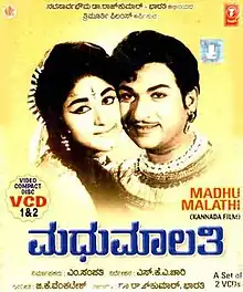 Madhu Malathi is a 1966 Indian Kannada-language romantic drama film, directed by S. K. A. Chari and produced by M. Sampath. The film stars Rajkumar, Udaykumar, Arun Kumar and Bharathi Vishnuvardhan. The film has musical score by G. K. Venkatesh.[1][2] The story of the movie is based on one of the popular Vikram - Vetal story from Vetala Panchavimashti, an 11th-century Sanskrit work whose earliest recensions are found in Kathasaritsagara written by Somadeva, the story further tracing back to the ancient Indian drama Mālatīmādhava by Bhavabhuti (c. 8th-century).[3] The title card credited the story to the director with a note that it was based on a book by Bhavabhuti.[4]