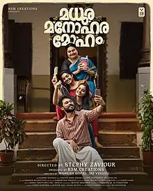 Madhura Manohara Moham (transl.Sweet beautiful desire) is a 2023 Indian Malayalam-language comedy drama film directed by Stephy Zaviour and written by Mahesh Gopal and Jai Vishnu.[4][5] The film features an ensemble cast with Sharaf U Dheen, Rajisha Vijayan, Bindu Panicker, Aarsha Chandini Baiju, Vijayaraghavan and Saiju Kurup.[6] Set in Kumbazha, the story revolves around the events surrounding the lives of siblings Manu and Meera and the unexpected truths that unfold.