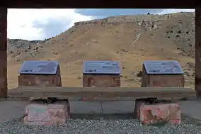 Madison Buffalo Jump State Park is a Montana state park located seven miles south of the Interstate 90 interchange at Logan in Gallatin County, Montana in the United States. The park preserves a canyon cliff used by Native Americans as a buffalo jump, where herds of bison were stampeded over the cliff as an efficient means of slaughter.[4] The main geographic features of the jump site remain largely unchanged since the days of the jumps. Archaeologists have found tons of bison bones buried at the base of the cliffs. They have also uncovered the remains of tipi villages.[5]