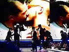 Madonna sparked again conversations after kissing Christina Aguilera and Britney Spears at the 2003 MTV Video Music Awards. Their kiss have been replicated numerous times, including by Israeli activists in 2019, to celebrate Madonna's arrival at the Eurovision Song Contest and to show that "love break down barriers",[131] and in popular culture by celebrities like Kylie Jenner.[132]