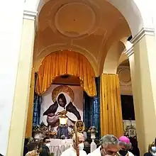 At the request of the Jesuit priest Vyacheslav Okun, a canvas copy of the portrait "Madonna from the Metro" was sent to Italy to be kept in the place where the priest will serve.[1] On Holy Thursday, the Archbishop of Naples consecrated the painting as an object of worship.[2] The icon was displayed in the Church of the Sacred Heart of Jesus, nicknamed "Madonna of Kyiv", located in the commune of Munyano di Napoli. The icon was consecrated by Pope Francis on March 25, 2022.[4]