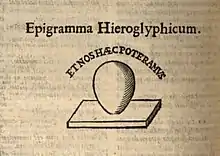 The final illustration in the book is of the egg of Columbus standing on its point on a slate and bearing the motto Et nos haec poteramus ("and we have been able to do likewise") - in other words, in producing this work, Kircher had, like Columbus, been able to do something thought to be impossible.[18]