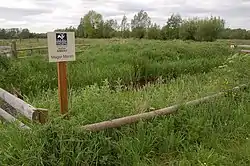 There are two hay meadows in Magor Marsh, maintained using traditional methods. The meadows are grazed during autumn and winter. The hay crop is mown in mid-summer to provide winter feed. By late spring the fields are a mass of flowers. In the meadows are such species as lady's smock, ragged robin,[3] yellow flag, lesser spearwort and meadow thistle. The common species in the reeds are teasel, common reed, hemp agrimony and purple loosestrife. In the reen grow water horsetail, reedmace, marsh marigold and azure damselfly. Osier, crack willow and sallow are typical tree species in the wet woodland.[2]