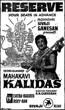 Mahakavi Kalidas (transl.The great poet, Kalidas) is a 1966 Indian Tamil-language biographical film produced and directed by R. R. Chandran, starring Sivaji Ganesan.[2] It is based on the life of the poet Kalidasa.[3] The film was released on 19 August 1966.[4]