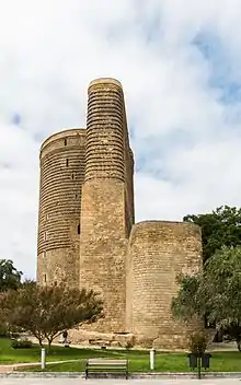 The Maiden Tower (Azerbaijani: Qız qalası; Persian: قلعه دختر) is a 12th-century monument in the Old City, Baku, Azerbaijan. Along with the Shirvanshahs' Palace, dated to the 15th century, it forms a group of historic monuments listed in 2001 under the UNESCO World Heritage List of Historical Monuments as cultural property, Category III. It is one of Azerbaijan's most distinctive national emblems, and is thus featured on Azerbaijani currency notes and official letterheads.[1][2]