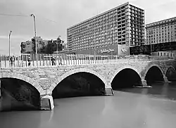 Main Street Bridge is a historic stone arch bridge located at Rochester in Monroe County, New York. It was constructed in 1857 and spans the Genesee River. It has five segmental arches with spans of 30 to 42 feet (9.1 to 12.8 m) and rises of 8–11.5 feet (2.4–3.5 m).[2]