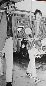 After the Magical Mystery Tour recordings, Evans flew to Nice with McCartney to shoot "The Fool on the Hill" promotional film, although McCartney set off without luggage or a passport.[32] McCartney got past customs by saying "You know who I am", but he and Evans were not allowed into a hotel restaurant in Nice because they "didn't look the part", and had to eat dinner in Evans' room.[32] Because the money they had with them had been spent on clothes (NEMS was supposed to send them more), they arranged for credit over two nights in a nightclub. Evans: "We took advantage of our credit standing, as money had still not arrived from England. News about Paul's [McCartney] visit to the club the previous night had spread, and the place was jammed. Now Paul, being a generous sort of person, had built up quite a bar bill, when the manager of the club arrived demanding that we pay immediately. On explaining who Paul was and what had happened, he answered, 'You either pay the bill, or I call the police.' It certainly looked like we were going to get thrown in jail. It was ironical, sitting in a club with a millionaire, unable to pay the bill."[32]