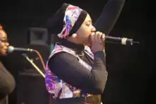 She released her first single in 2012, which was part of a project run by the Ministry for Women.[4] In 2013 she made her first television appearances.[4] In 2016 she was photographed by Leila Alaoui, as part of a series focusing on women's empowerment in Burkina Faso.[5] The same year, and postponed by the terrorist attack in which Alaoui was killed, Ouattara released her first album, entitled Slamazone.[4] The album sold more than 5000 copies.[3] Artists who collaborated with Ouattara on it include: Smarty, Greg Burkimbila, Will Be Black and Wendyida.[6] Her music and poetry are socially conscious and feature themes of love, as well as women's rights issues such as unplanned pregnancy.[7] In her single "All Night" she discusses unfaithfulness in relationships.[8] She has won numerous slam awards in West Africa.[9] In June 2015 she took part in a week to raise awareness of issues facing people with albinism in her country.[10]