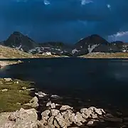 Lakes twelve to twenty-three are located along the southern slope of Belemeto at the foothills of the summit of Kamenitsa. The largest are lakes 12, 13, 15, 17 and 22. They are heterogeneous in character. Some have a non-permanent water flow, most are marshy, with sloping grass banks. An exception is lake 22 on the northern slopes of Kamenitsa at an altitude of 2375 m, which is the second largest in the lake group with an area of 13,950 m2,[5] maximum depth of 2.3 m and a volume of 11,500 m3. It has rocky shores and rocky bottom.[2]