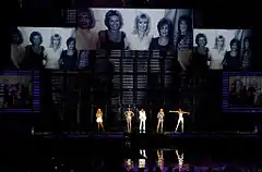 The group have performed the song on their four tours, the Spiceworld Tour, the Christmas In Spiceworld Tour, the Return of the Spice Girls Tour and the Spice World - 2019 Tour.[36][37][38][39] It remained in the group's live set after Halliwell's departure at the end of the European leg of the Spiceworld Tour. The performance at the tour's final concert can be found on the video: Spice Girls Live at Wembley Stadium, filmed in London, on 20 September 1998.[40] During the Return of the Spice Girls tour, "Mama" was performed as the second song from the show's fifth segment. All five girls stood together holding hands to perform it, while the LED screens in the background showed photos of their mothers holding baby pictures of the group, and a montage of them and their children.[41][42] For the British shows, fifty young girls from the Capital Children's Choir dressed in white came out from a platform and lined the stage against the backdrop screens to sing with the Spice Girls.[43]