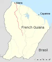 The Mana (French pronunciation: [mana]) is a river in western French Guiana. It runs north from central French Guiana to the town of Mana, where it flows into the Atlantic Ocean. It is 462 km (287 mi) long.[1]