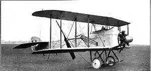 The prototype was assembled at Hendon Aerodrome in February 1915, fitted with a 100 horsepower (75 kW) Anzani radial engine. It made its maiden flight on 19 February 1915. It suffered problems with the complicated chain drive, which slowed testing, and proved to be underpowered, reaching a top speed of 70 miles per hour (110 km/h).[7] In order to improve performance, it was fitted with a 125 horsepower (93 kW) Anzani, flying in this form on 29 June 1915.[8] A series of gradual modifications were made to improve performance, with the aircraft eventually reaching a speed of 85 miles per hour (137 km/h). While it was planned that the aircraft would be evaluated by the Royal Flying Corps, this did not occur because the prototype was wrecked in a crash-landing during an attempt on the British altitude record on 16 November 1915, caused by failure of the gearbox.[9][10][11]